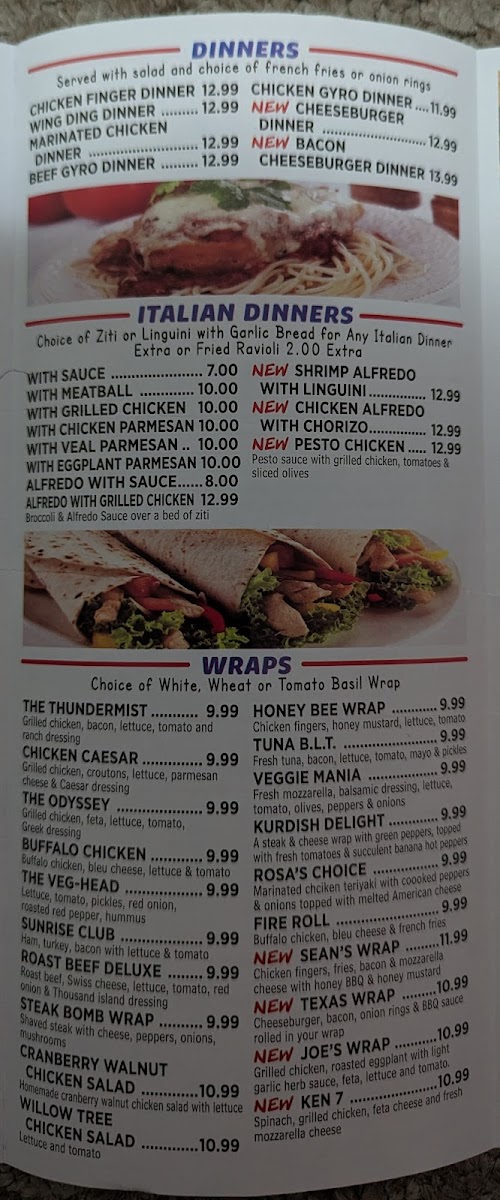 At Sunrise Pizza & Creamery, located in the heart of Woonsocket, RI, the menu offers a delightful combination of classic Italian dishes and sweet treats. Whether you're craving a refreshing Garden Salad for just $8.10 or an indulgent Italian Dinner featuring savory meatballs and garlic bread for $12.00, there's something to satisfy every palate.